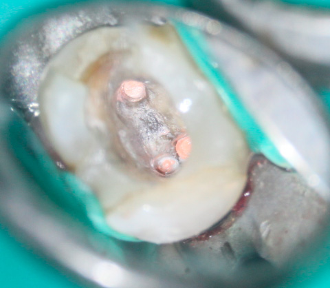 - Réaliser l'obturation canalaire, le plus souvent à l'aide de gutta-percha chauffée ou froide, liée aux parois dentinaires avec un ciment canalaire.